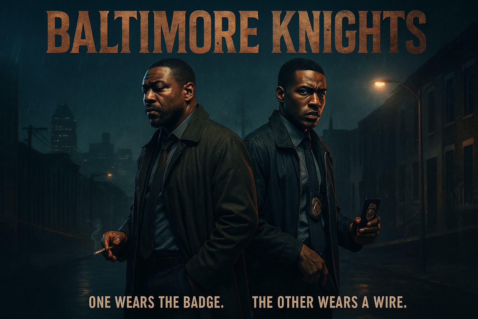 Baltimore Knights is a gritty, character-driven buddy cop series that blends street-level crime drama with layered family conflict. Detectives Frederick and Timothy Knight are more than partners—they’re blood. But when Frederick, the straight-arrow rookie, is assigned as his cousin’s partner, he’s also handed a covert mission: investigate Timothy for corruption.