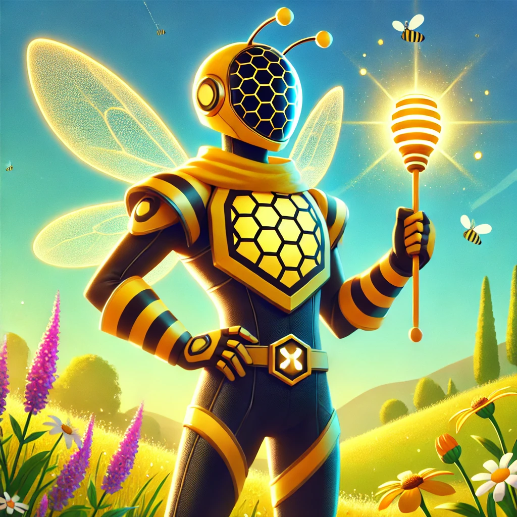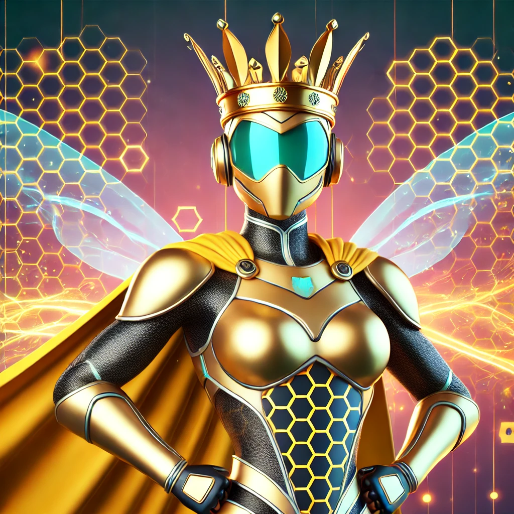 Queen: The leader—modeled after the queen bee, regal and strategic, they manage the team’s efforts. Their suit could have a crown-like element and flowing cape to signify authority.